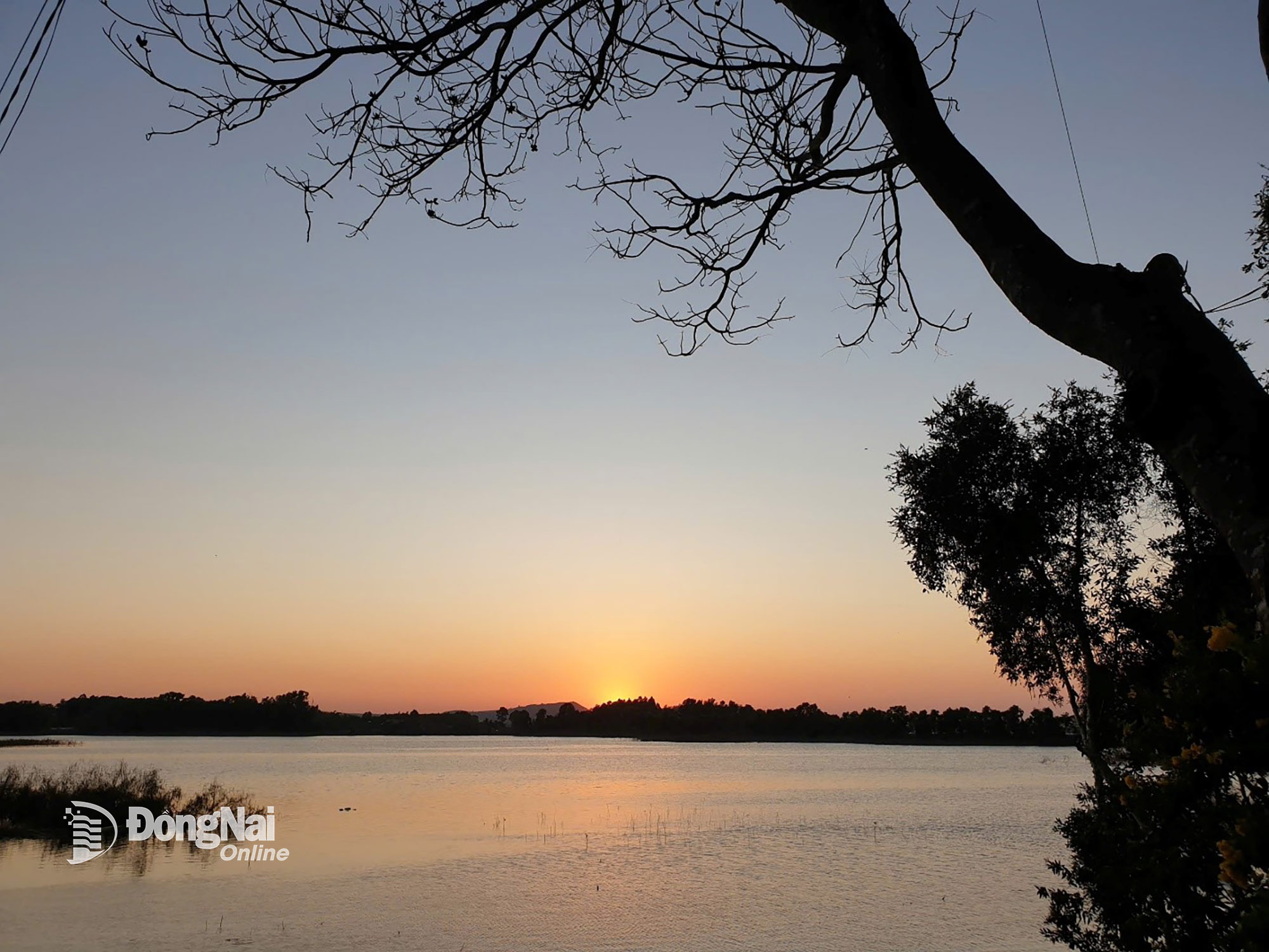 Cảnh đẹp hoàng hôn tại hồ cá La Ngà. Ảnh H.Thu