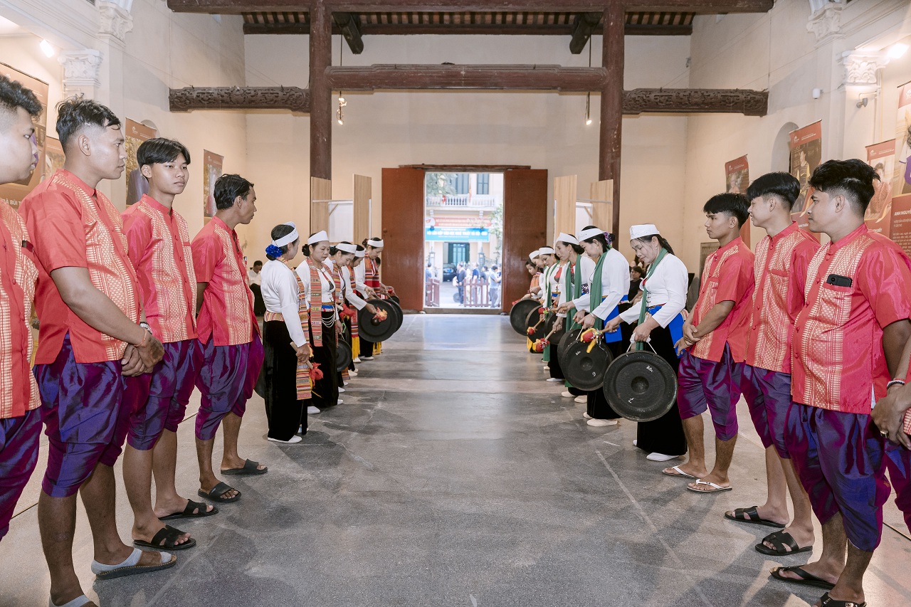 Hai di sản tiêu biểu là chiêng Mường và Nhạc ngũ âm của người Khmer được giới thiệu, trình diễn và trưng bày một cách hệ thống, sinh động. Ảnh: TITC
