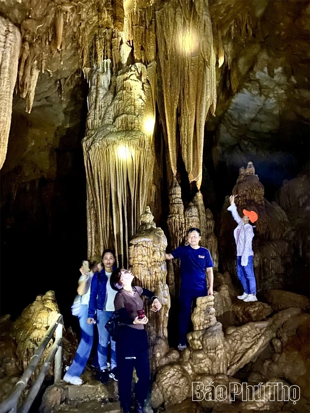 Du khách chiêm ngưỡng vẻ đẹp huyền ảo, các khối nhũ đá muôn hình vạn trạng trong lòng động Nam Sơn thuộc xóm Tớn, xã Vân Sơn
