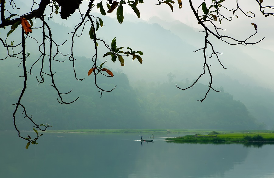Làn sương phủ nhẹ mặt hồ trong veo ở bản Pác Ngòi. Ảnh: Vũ Duy Bội