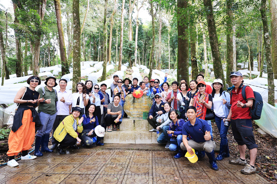 Đoàn khảo sát check-in tại vườn sâm Ngọc Linh tỉnh Quảng Ngãi. Ảnh: TITC