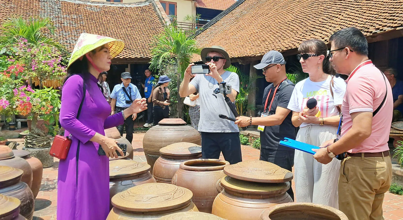 Khách du lịch quốc tế tham quan làng cổ Đường Lâm- TP Hà Nội. Ảnh: Hoài Nam