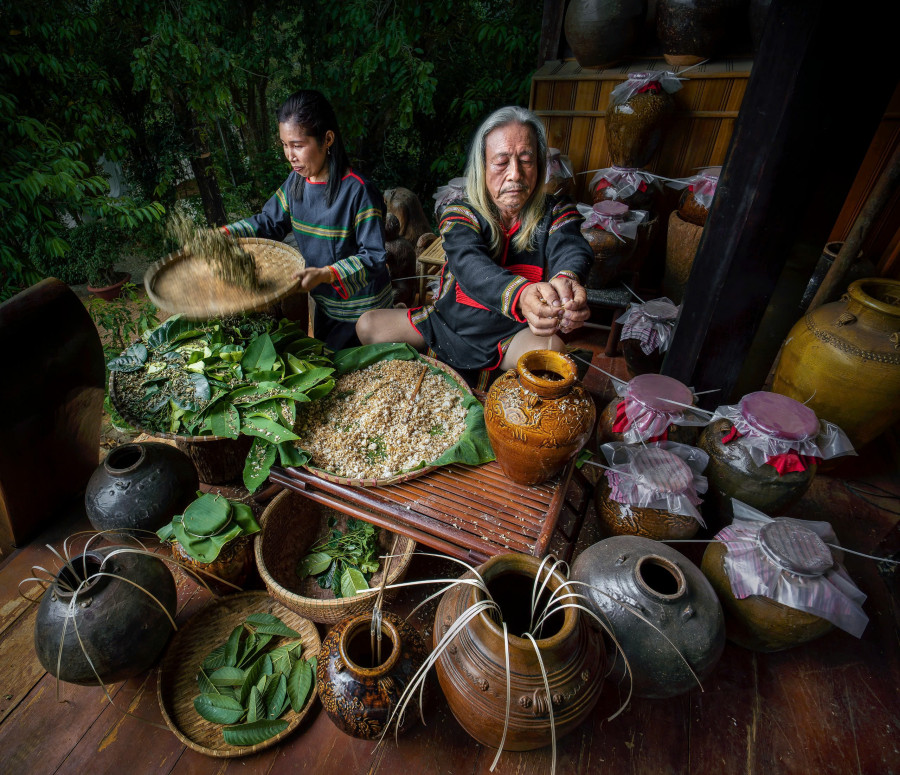 Chế biến rượu cần - nét đẹp lao động truyền thống của đồng bào dân tộc Êđê. Ảnh: Trần Hữu Hạt