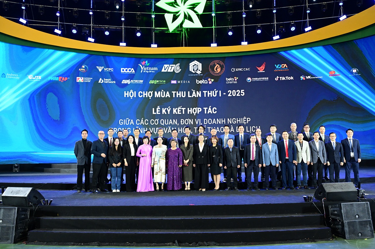 (TITC) - Trong khuôn khổ Hội chợ Mùa Thu lần thứ I, chiều ngày 03/11, tại Trung tâm Triển lãm Việt Nam, Bộ VHTTDL đã tổ chức Lễ ký kết hợp tác giữa các cơ quan, đơn vị, doanh nghiệp trong lĩnh vực văn hoá, thể thao và du lịch. Đây là hoạt động thiết thực nhằm tăng cường liên kết, thúc đẩy chuyển đổi số trong công tác truyền thông, quảng bá, qua đó lan tỏa hình ảnh đất nước, con người và văn hóa Việt Nam đến bạn bè quốc tế.