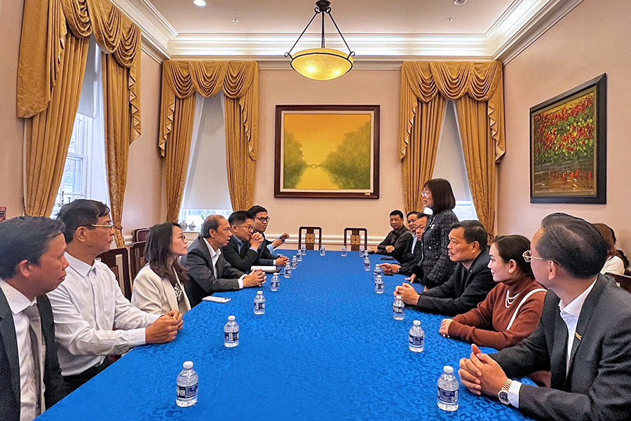 (TITC) - Sáng ngày 3/11 (theo giờ địa phương), trong khuôn khổ Chương trình giới thiệu Du lịch Việt Nam tại Hoa Kỳ, Phó Cục trưởng Cục Du lịch Quốc gia Việt Nam Nguyễn Thị Hoa Mai dẫn đầu đoàn đoàn công tác Việt Nam tới thăm và làm việc với Đại sứ quán Việt Nam tại Hoa Kỳ. Đại sứ đặc mệnh toàn quyền Việt Nam tại Hoa Kỳ Nguyễn Quốc Dũng cùng các cán bộ Đại sứ quán đã tiếp và làm việc cùng với đoàn.