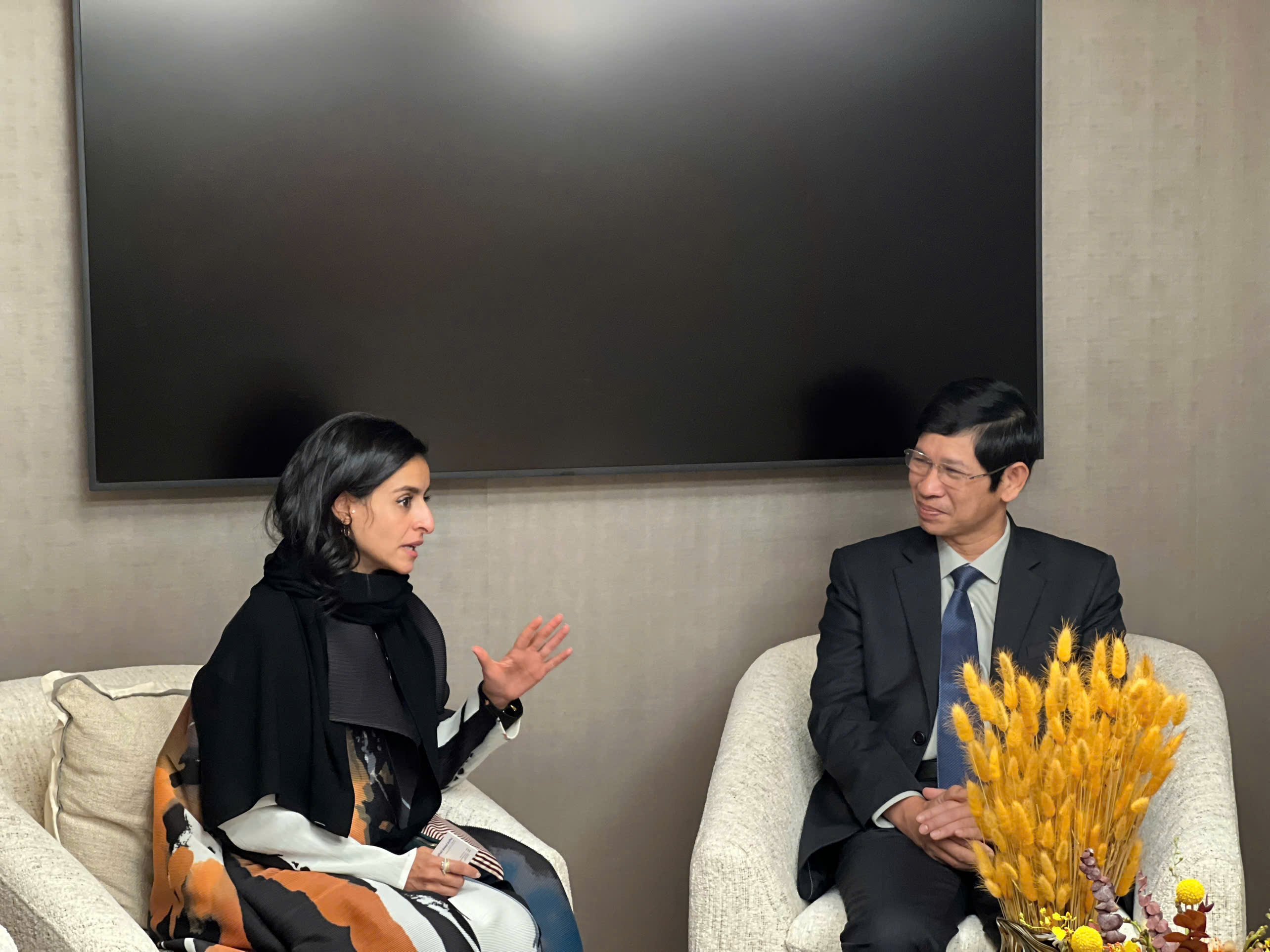 Bà Shaikha Al Nowais - Tân Tổng Thư ký UN Tourism bày tỏ sự vui mừng khi được gặp gỡ đoàn, đồng thời đánh giá cao những sáng kiến của Việt Nam