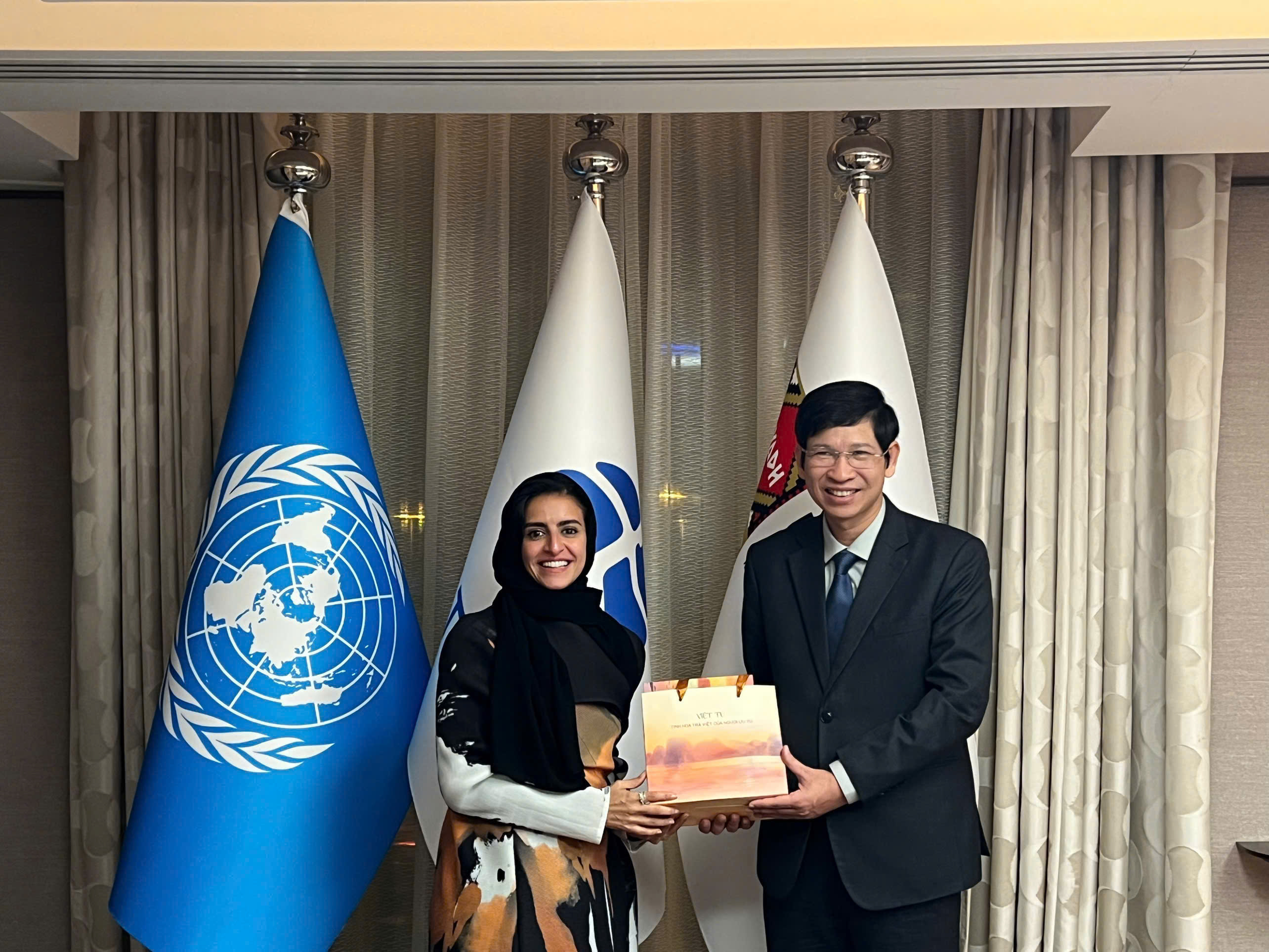 Thứ trưởng cũng trân trọng mời bà Shaikha Al Nowais đến thăm, làm việc tại Việt Nam nhằm trao đổi sâu hơn về các lĩnh vực hợp tác trọng tâm. Thứ trưởng cho biết, Cục Du lịch Quốc gia Việt Nam sẽ là đầu mối phối hợp với UN Tourism trong việc thúc đẩy các chương trình hợp tác song phương trong thời gian tới.