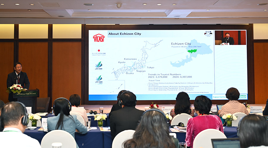 Chia sẻ về phát triển du lịch tại địa phương, ông Nishino Yoshiuki - Hiệp hội Du lịch Thành phố Echizen (Nhật Bản) cho biết, thành phố tập trung vào tăng cường sức hấp dẫn bản địa, khuyến khích định cư và bồi đắp niềm tự hào cộng đồng, các nỗ lực đang được thực hiện nhằm đóng góp cho sự phát triển bền vững của khu vực. Việc đa dạng hóa sản phẩm và dịch vụ dựa trên giá trị của “lao động thủ công” giúp tăng cường sức hút của khu vực như một điểm đến du lịch độc đáo. Du khách không chỉ tham quan mà còn mua sắm các sản phẩm và dịch vụ do địa phương cung cấp. Qua đó việc phân bổ chi tiêu du lịch và thu hút nhóm khách hàng trân trọng giá trị “thủ công” góp phần duy trì và phát triển nhiều ngành nghề đang gìn giữ văn hóa địa phương.