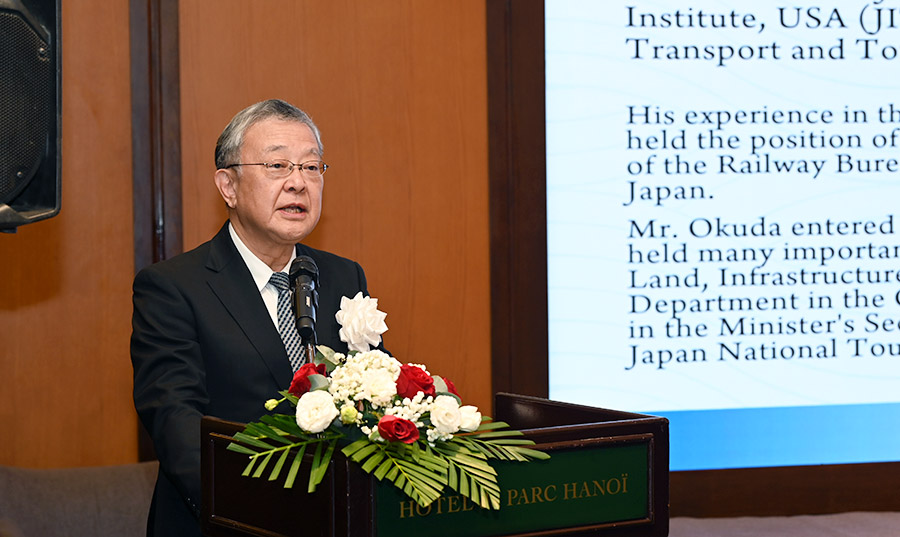 Ông Okuda Tetsuya - Chủ tịch Viện Nghiên cứu Giao thông và Du lịch Nhật Bản phát biểu. Ảnh: TITC