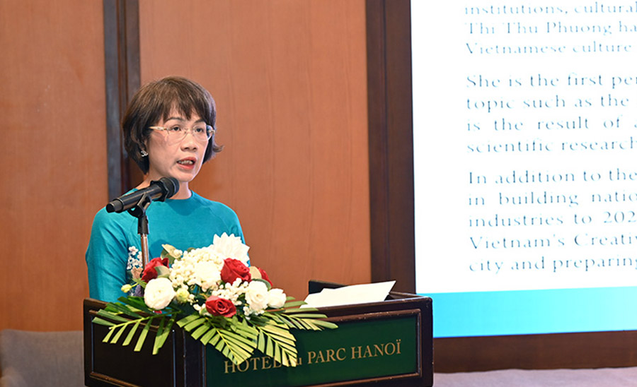 PGS. TS. Nguyễn Thị Thu Phương - Viện trưởng Viện Văn hóa, Nghệ thuật, Thể thao và Du lịch Việt Nam phát biểu khai mạc. Ảnh: TITC