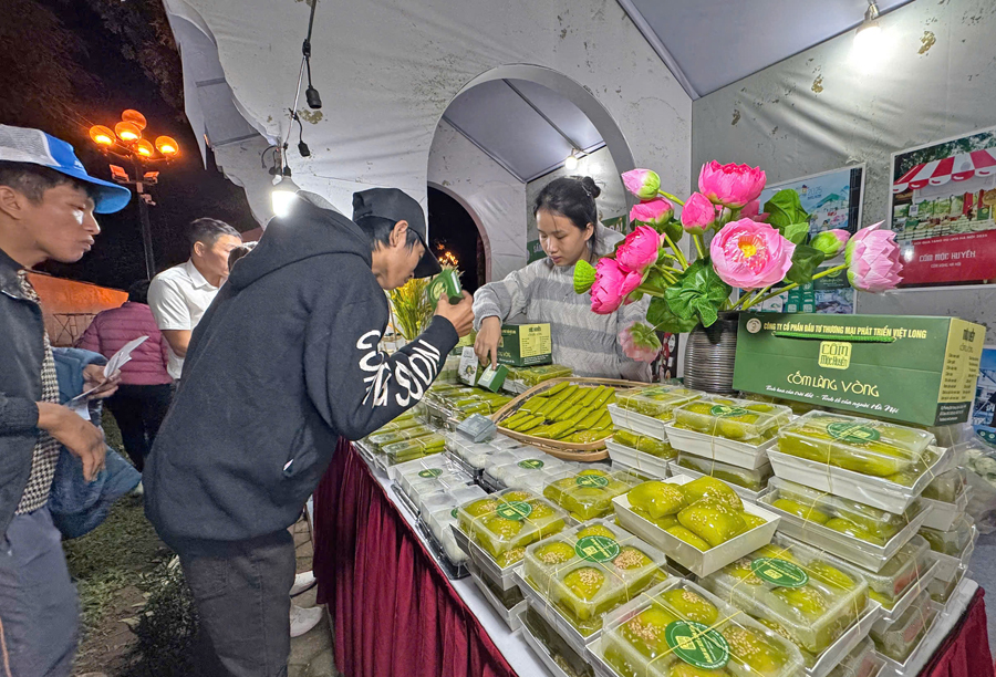 Du khách trải nghiệm thức quà đặc trưng Thu Hà Nội. Ảnh: TITC