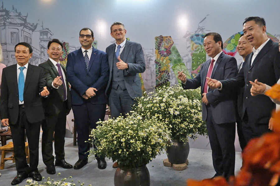 Phó Cục trưởng Cục Du lịch Quốc gia Việt Nam Hà Văn Siêu và các đại biểu check-in tại Festival Thu Hà Nội 2025. Ảnh: TITC