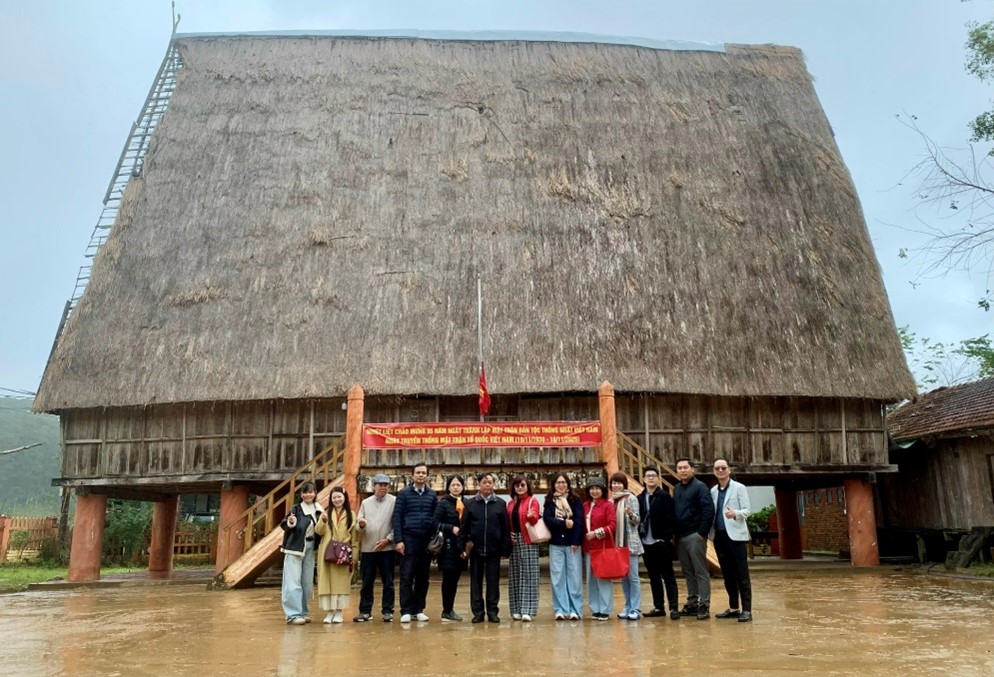 Đoàn tham quan, khảo sát Làng du lịch cộng đồng Konpring - nơi bảo tồn sâu sắc bản sắc văn hóa của đồng bào dân tộc Mơ Nâm. Ảnh: TITC