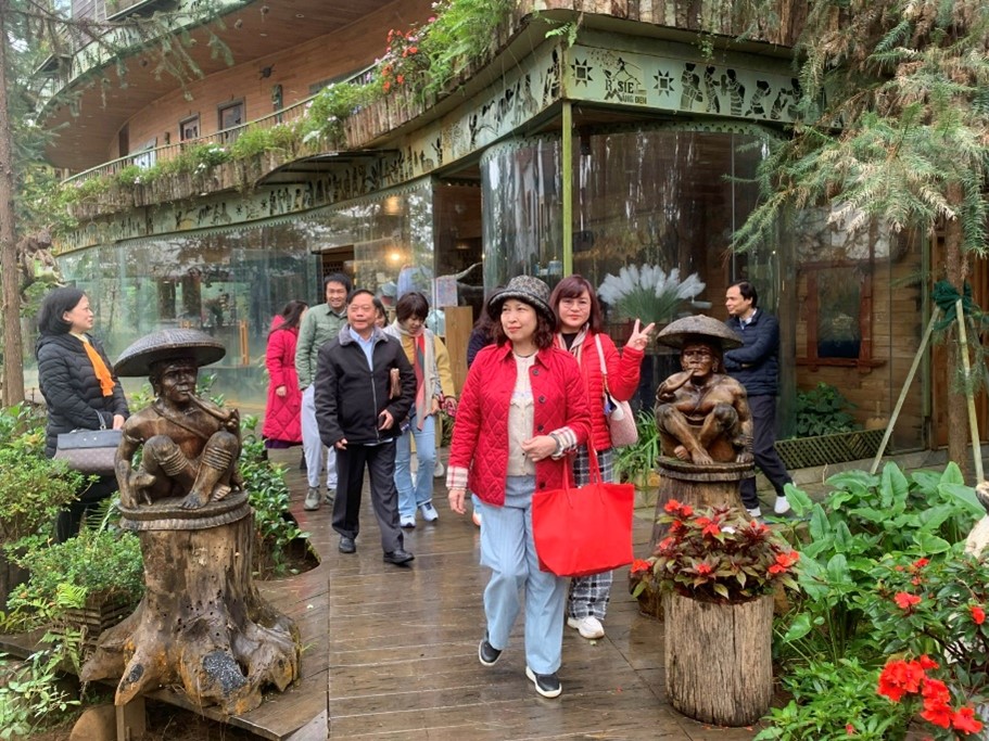 Đoàn khảo sát khu vực nhà trên cây tại Măng Đen, một điểm nhấn sáng tạo, mang tính khám phá cao, thu hút du khách trẻ và nhóm khách tìm kiếm sự khác biệt. Ảnh: TITC
