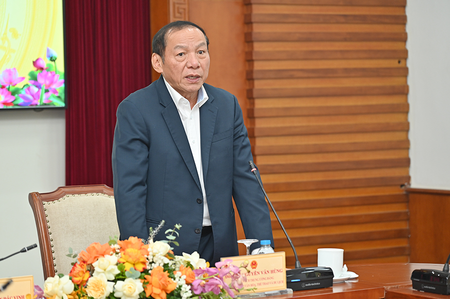 Phát biểu tại buổi làm việc, Bộ trưởng Nguyễn Văn Hùng cho biết năm 2025, ngành VHTTDL đạt nhiều kết quả nổi bật: công nghiệp văn hoá, đặc biệt là điện ảnh và nghệ thuật biểu diễn, phát triển tích cực; văn hoá đối ngoại ghi dấu khi UNESCO thông qua sáng kiến “Thập kỷ quốc tế về văn hoá vì phát triển bền vững” do Việt Nam đề xuất; nhiều di sản tiếp tục được UNESCO vinh danh và được khai thác theo tinh thần biến “di sản thành tài sản”.