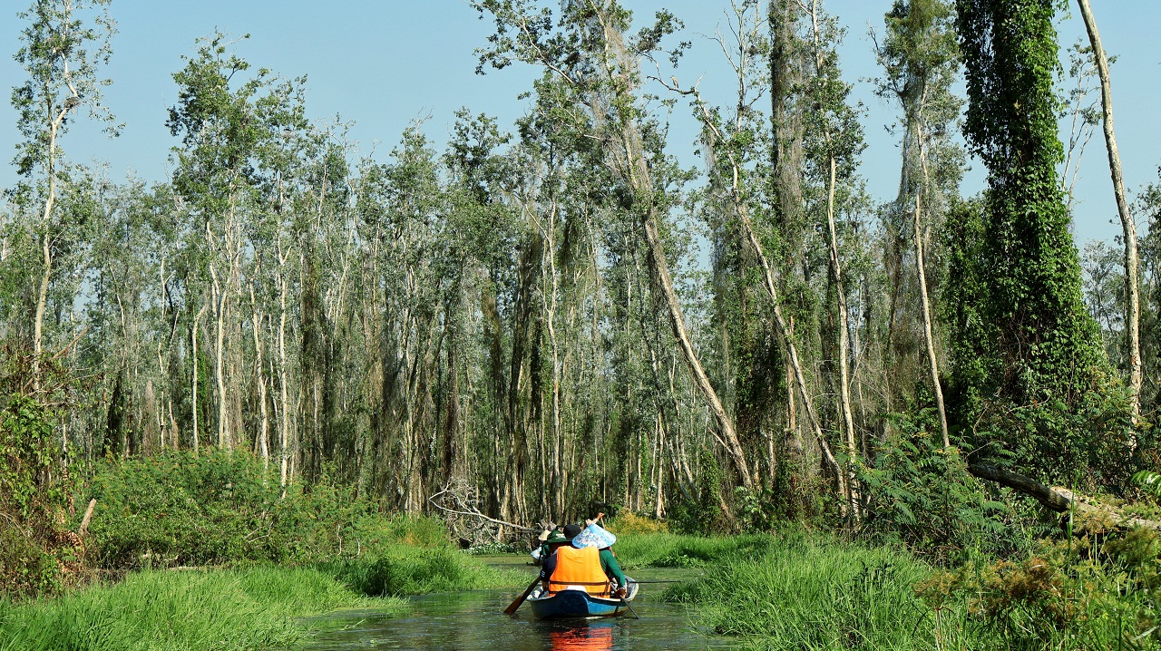Đoàn khảo sát rừng tràm Trà Sư. Ảnh: TITC