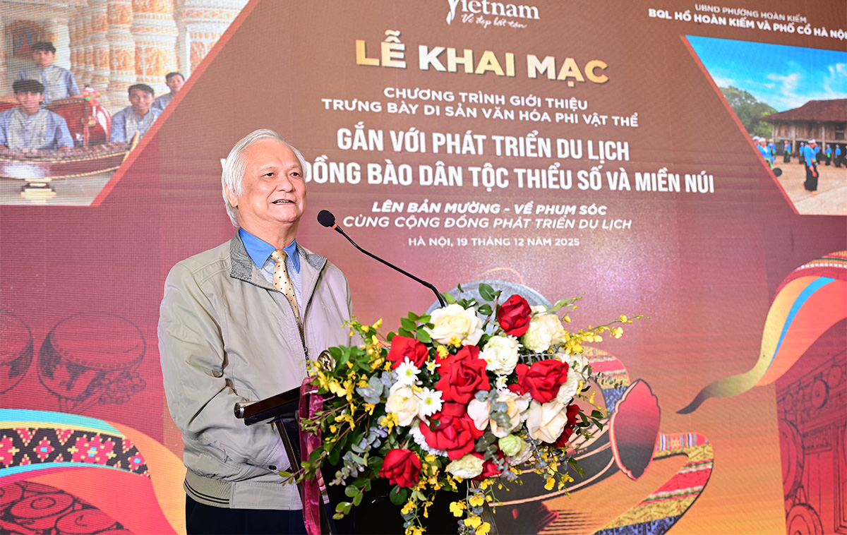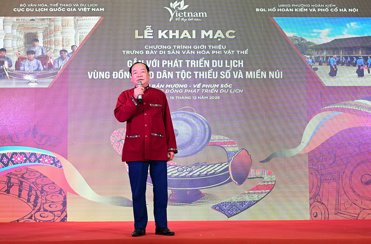 (TITC) - Chiều ngày 19/12, tại Trung tâm Văn hóa Nghệ thuật 22 Hàng Buồm (phường Hoàn Kiếm, Hà Nội), Trung tâm Thông tin du lịch (Cục Du lịch Quốc gia Việt Nam) tổ chức Lễ khai mạc Chương trình giới thiệu, trưng bày Di sản văn hóa phi vật thể gắn với phát triển du lịch vùng đồng bào dân tộc thiểu số và miền núi năm 2025.