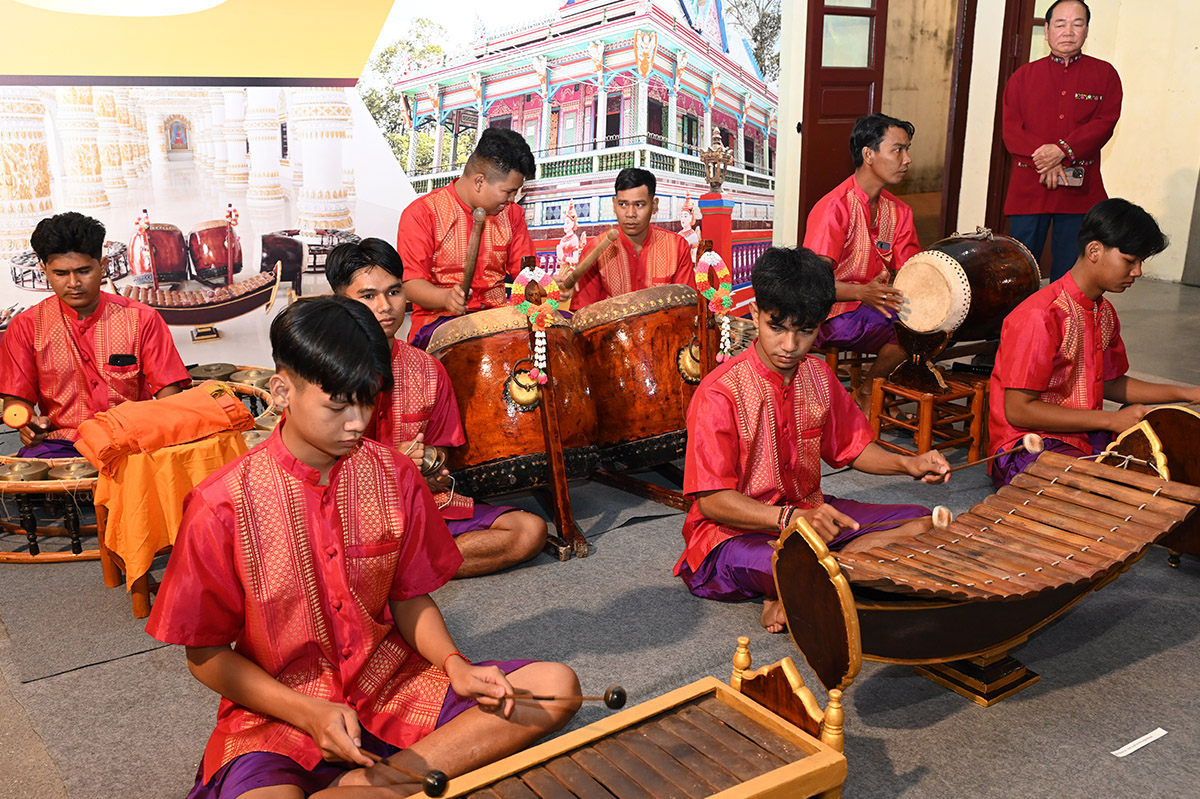 Đoàn nghệ nhân người Khmer biểu diễn Nhạc Ngũ âm. Ảnh: TITC