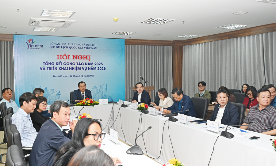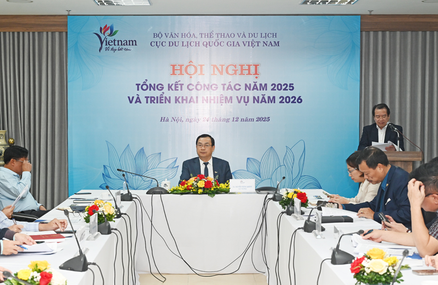 (TITC) - Sáng ngày 24/12, Cục trưởng Nguyễn Trùng Khánh đã chủ trì Hội nghị tổng kết công tác năm 2025 và triển khai nhiệm vụ năm 2026 của Cục Du lịch Quốc gia Việt Nam.
