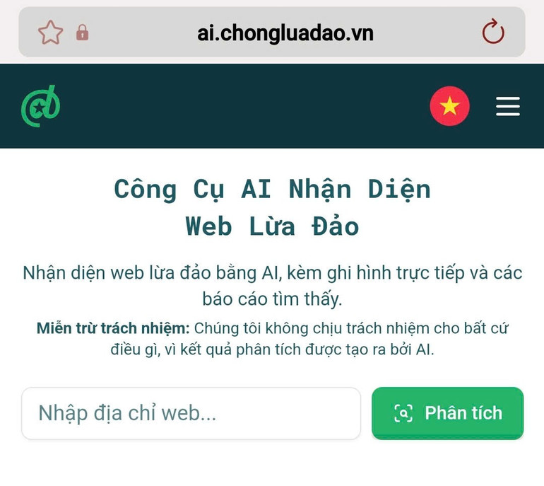 Đây là một công cụ AI nhận diện web lừa đảo do Chống Lừa Đảo phát triển