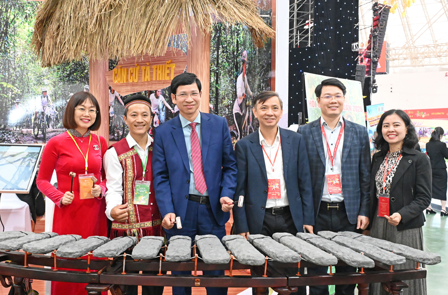 Thứ trưởng Bộ VHTTDL Hồ An Phong và Phó Cục trưởng Cục Du lịch Quốc gia Việt Nam Nguyễn Thị Hoa Mai thăm gian hàng Quảng Trị. Ảnh:TITC