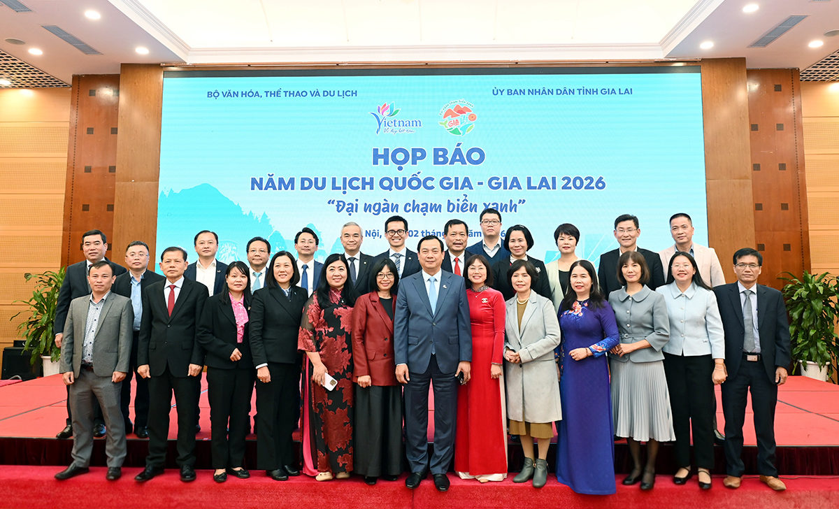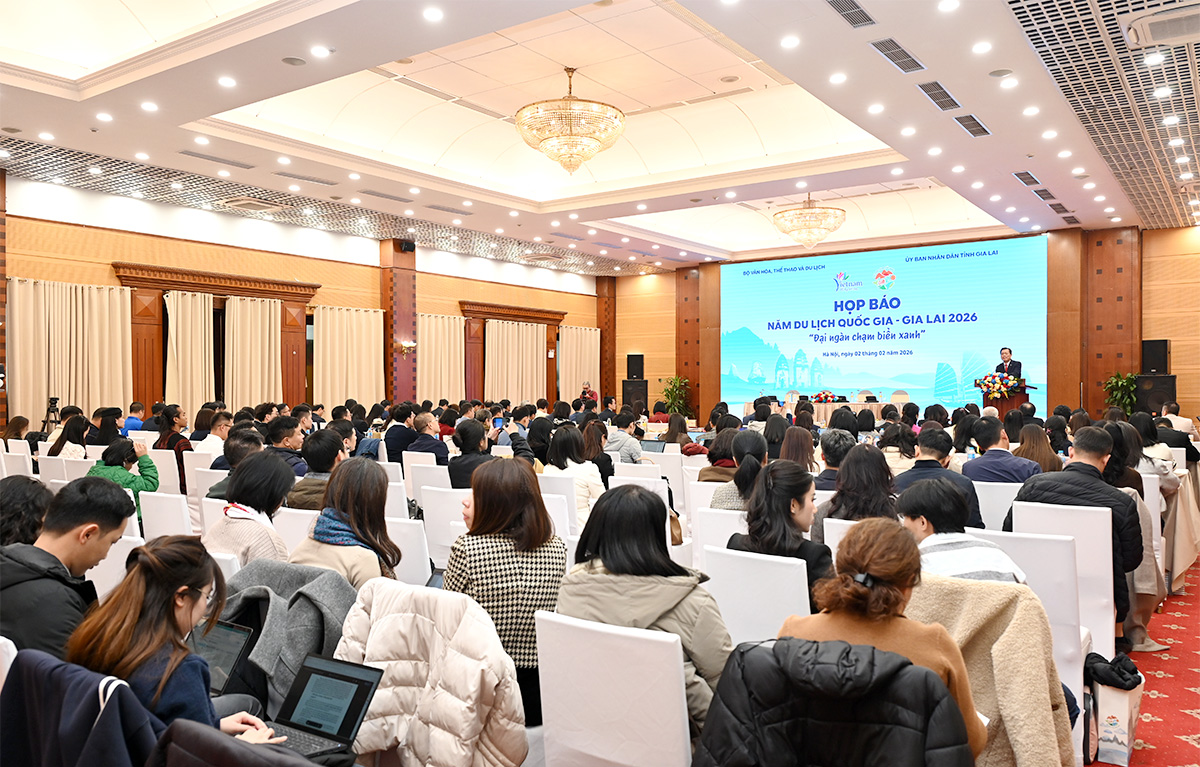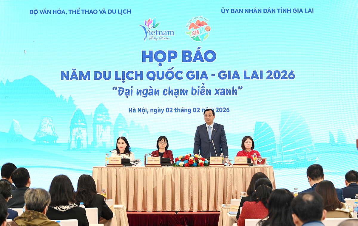 (TITC) - Chiều ngày 02/02, tại Hà Nội, Cục Du lịch Quốc gia Việt Nam (Bộ Văn hóa, Thể thao và Du lịch) và Ủy ban nhân dân tỉnh Gia Lai đã chủ trì tổ chức Họp báo giới thiệu về Năm Du lịch quốc gia - Gia Lai 2026 với chủ đề “Gia Lai - Đại ngàn chạm biển xanh”.
