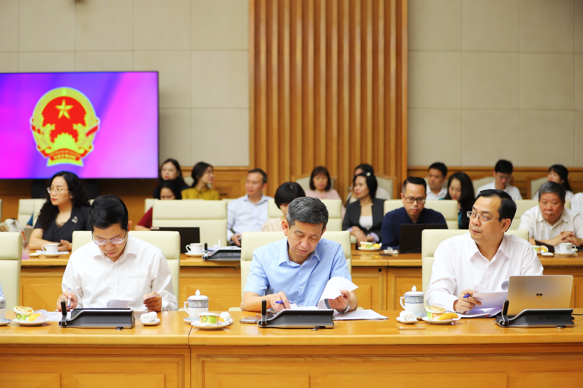 Tham dự cuộc họp có Bí thư Trung ương Đảng, Phó Thủ tướng Chính phủ Phạm Thị Thanh Trà; Bộ trưởng, Chủ nhiệm Văn phòng Chính phủ Đặng Xuân Phong; cùng lãnh đạo các bộ, ngành.