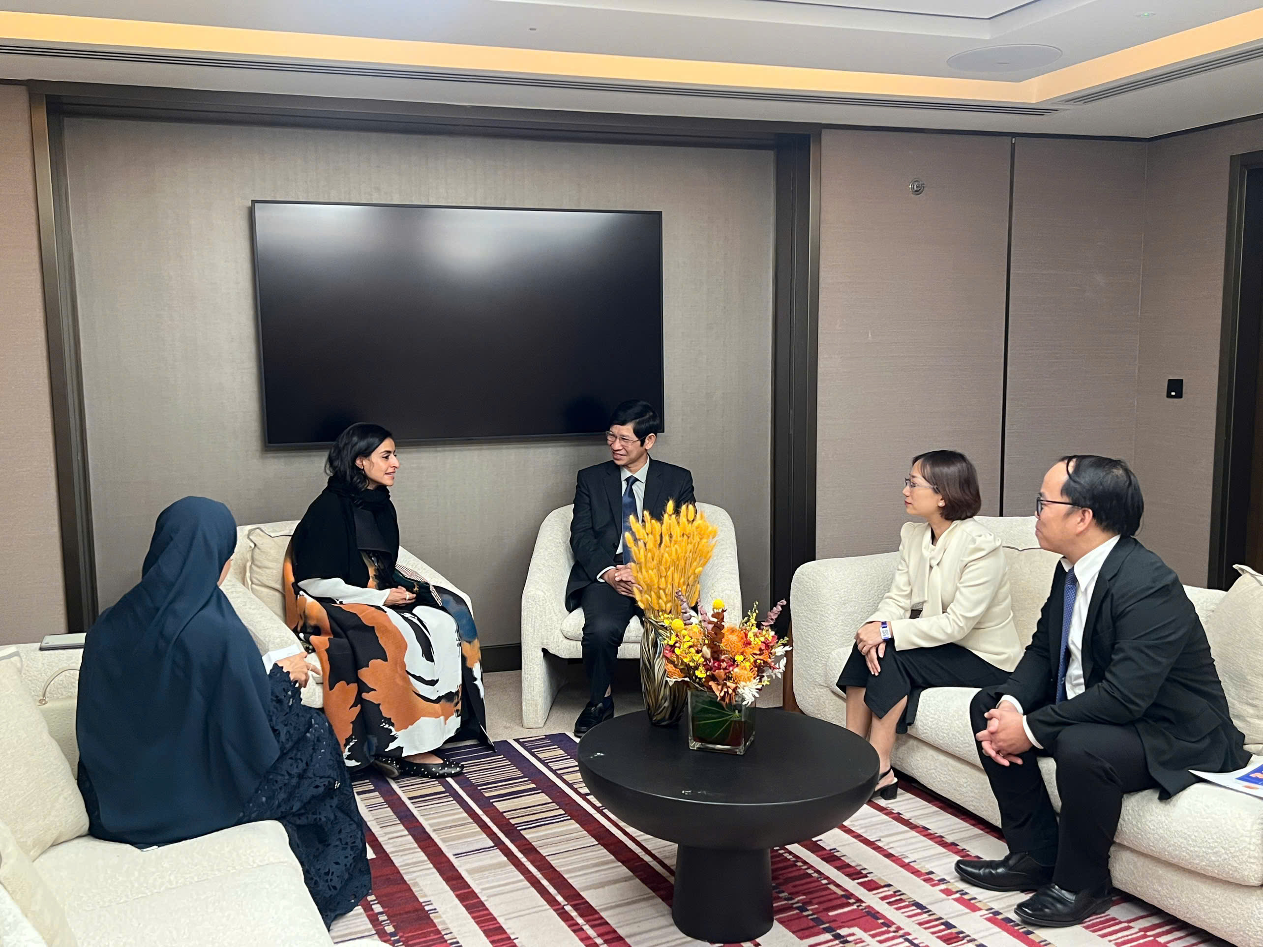 (TITC) - Trong khuôn khổ Đại hội đồng Tổ chức Du lịch Liên Hợp Quốc (UN Tourism), ngày 9/11, Thứ trưởng Bộ Văn hoá, Thể thao và Du lịch Hồ An Phong dẫn đầu đoàn công tác Việt Nam đã có cuộc gặp mặt bà Shaikha Al Nowais - Tân Tổng Thư ký UN Tourism nhiệm kỳ 2026-2029.