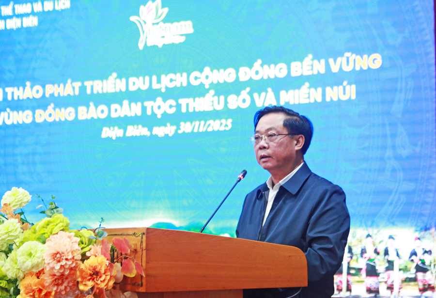 (TITC) - Chiều ngày 30/11, tại khu nghỉ dưỡng Him Lam (phường Điện Biên Phủ tỉnh Điện Biên), Cục Du lịch Quốc gia Việt Nam phối hợp cùng Sở VHTTDL Điện Biên tổ chức Hội thảo “Phát triển du lịch cộng đồng bền vững vùng đồng bào dân tộc thiểu số và miền núi”. Phó Cục trưởng Cục Du lịch Quốc gia Việt Nam Phạm Văn Thủy cùng Phó Giám đốc Sở VHTTDL Điện Biên Nguyễn Thị Thanh Chuyên chủ trì hội thảo.